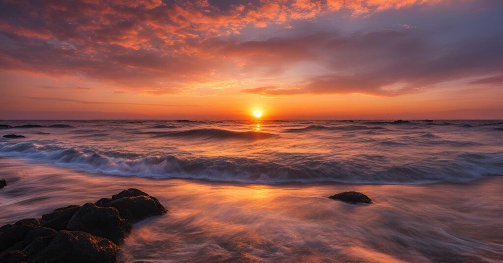 例えば、「夕焼けの海」という言葉を入力すると、その内容に基づいた美しい画像が作成されます。