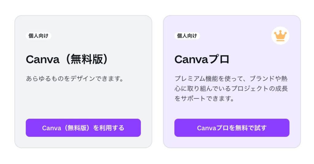 Canvaには無料版と有料版があって、それぞれ使える機能が少し違うんです。