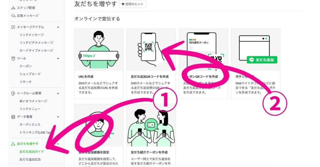 友だちを増やすことで、より多くの顧客にアプローチし、効果的にメッセージ配信を行うことができます。